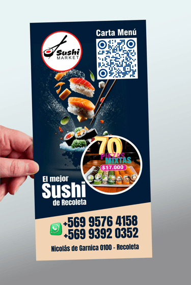 Último proyecto entregado a SushiMarket en febrero 2026, antes de regresar a Barcelona, diseño e impresión.